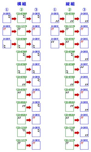 アレの話。 事の顛末 取りあえず、中でどうなっているかを、まとめてみた。 一番左にあるのが、TeXでの入力。 ①から始まるものは、Unicodeで入力した場合。 ②から始まるものは、AJ1(japanese-otf の \CID)で入力した場合。 AJ1 対応のフォントの場合は②が…